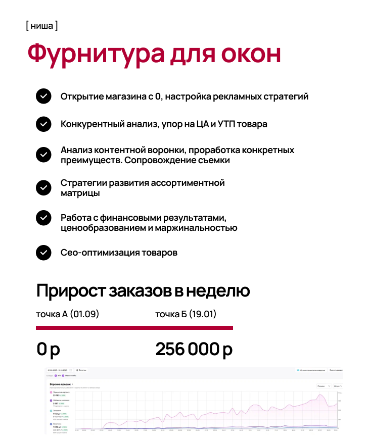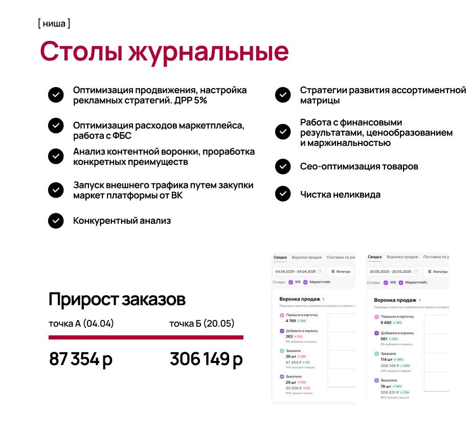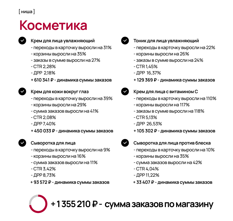Наши услуги – это ваше спокойствие и рост прибыли. Доверьте ведение ваших кабинетов профессионалам и сосредоточьтесь на развитии вашего бренда!