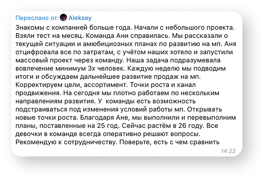Прозрачная Отчетность: Полная открытость процессов. Вы всегда знаете, что происходит с вашими продажами и рекламными кампаниями, благодаря понятным и регулярным отчетам