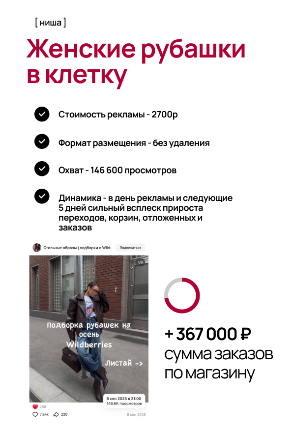 (Бывает так, что товар подходит лучше для продвижения через ВК посевы/таргет) Индивидуально рассмотрим ваш товар, и, если он подходит для внешнего трафика через блогеров на таких площадках, как: Tik Tok, YouTube, ВК, лайк, мы предложим подобный вариант продвижения